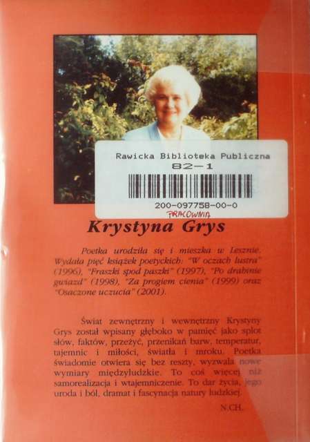 Osaczone uczucia / Krystyna Grys. - Poznań : Poeticon, 2001. - 56 s. ; 21 cm.
