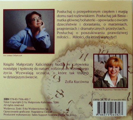 Powroty nad rozlewiskiem. T.2 / Małgorzata Kalicińska ; lektor Zofia Kucówna. - Warszawa : Zysk i S-ka Wydawnictwo, 2006. - 2 płyty CD (7 godz.42 min.36 sek. ; 7 godz.49 min.43 sek.) : digital, stereo ; 12 cm ; Format MP3.