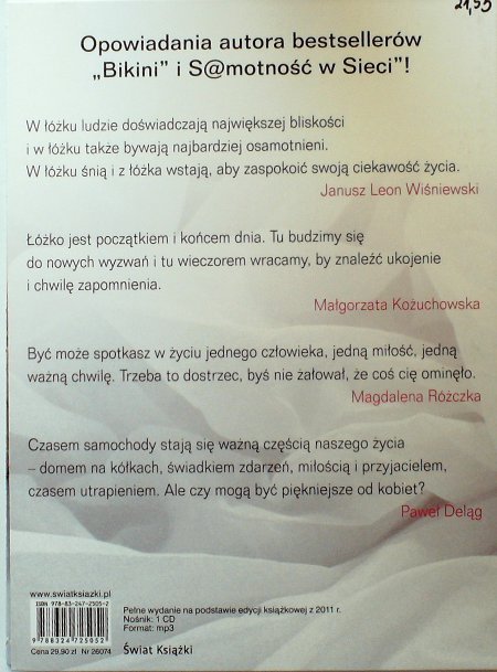 Łóżko / Janusz Leon Wiśniewski ; lektor Janusz Leon Wiśniewski. - Warszawa : Świat Książki, 2011. - 1 płyta CD (4 godz. 43 min.) : digital, stereo ; 12 cm ; Format MP3.
