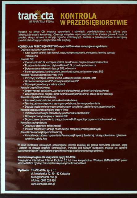Kontrola w przedsiębiorstwie. - Katowice : Wydawnictwo Transacta, [2011]. - 1 dysk optyczny (CD-ROM) ; 12 cm.