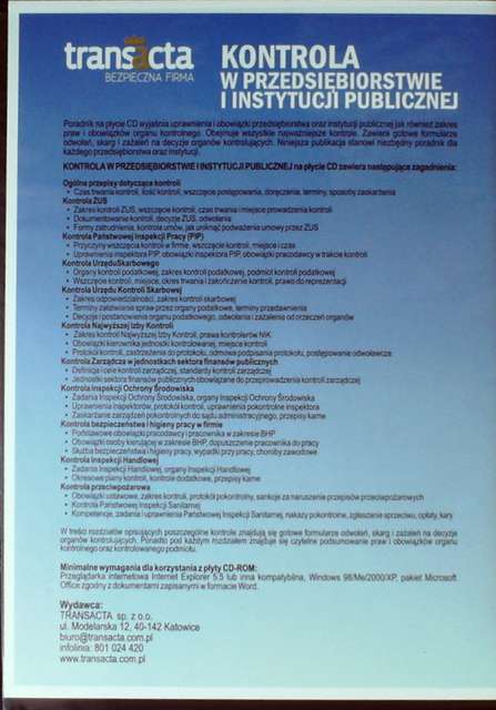 Kontrola w przedsiębiorstwie i instytucji publicznej. - Katowice : Wydawnictwo Transacta, [2011]. - 1 dysk optyczny (CD-ROM) ; 12 cm.