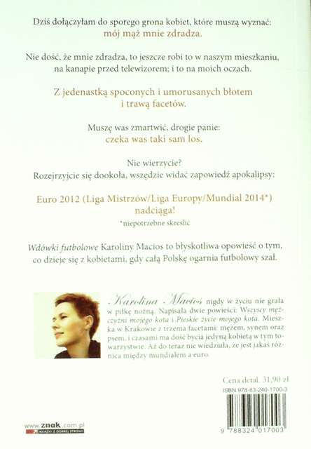 Codzienne perypetie bohaterów rozśmieszą Was do łez, ale także zmuszą do refleksji. Pokażą, że ideały są tylko w bajkach, a wiele kobiet przeżywa podobne problemy i rozterki. Idealna lektura na czerwcowy wieczór, kiedy w tle będzie słychać mecz. am.