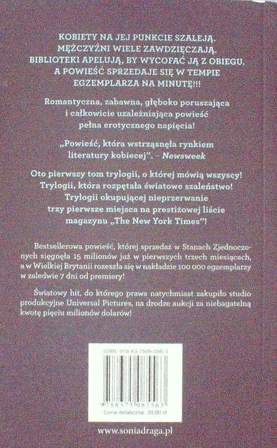 Ciągle nie mogę zrozumieć fenomenu tej książki, dlaczego tak chętnie sięgają po nią kobiety na całym świecie? Od nastolatki do 50-cio latki? Miałam nadzieję, że przeczytanie jej pozwoli mi to zrozumieć, niestety tak się nie stało.