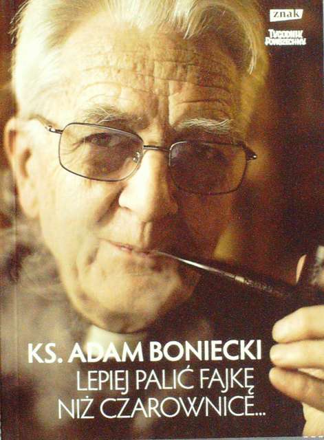 Po tym, jak ksiądz Adam Boniecki otrzymał od swego przełożonego polecenie, by „ograniczyć swoje wystąpienia medialne”, rozpętała się w Polsce dyskusja o granicach wolności słowa w Kościele. Tom zawierający krótkie artykuły i niezwykłe zdjęcia Bonieckiego przypomina, o czym przez ostatnie lata pisał na łamach „Tygodnika Powszechnego” ów nietuzinkowy kapłan. Będzie w nim mowa i o wewnątrzkościelnym dialogu, (...) i o tym, jak rozmawiać z inaczej myślącymi. O szacunku dla krzyża i o prawdziwym (i niebezpiecznym) satanizmie. O listach biskupów i polskich antyklerykałach, ale też o sile Ewangelii. To szansa, by nareszcie uważniej wsłuchać się w to, co ma do powiedzenia ksiądz, który rzeczywiście woli palić fajkę niż...”.