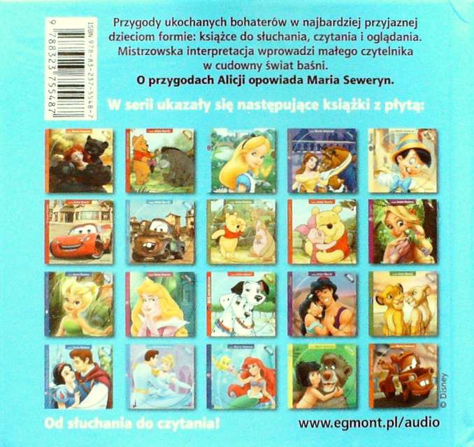 Alicja w Krainie Czarów / lektor Maria Seweryn. - Warszawa : Wydawnictwo Egmont Polska Sp. z o.o., 2012. - 1 płyta CD : digital stereo ; 12 cm ; Format MP 3 + książka 31, [1] s. : il. kolor.