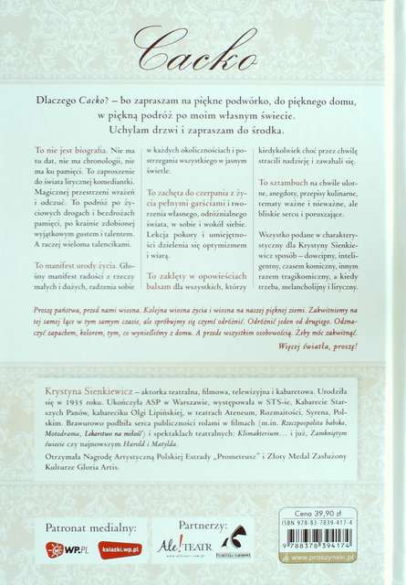 Krystyna Sienkiewicz, osoba filigranowa lecz pełna werwy, całym swoim życiem udowadniała, że można z każdego nieszczęścia wyjść mocniejszym bez użalania się nad sobą. (...) O swoich przeżyciach i dramatach artystka pisze bez zadęcia, z dużym poczuciem humoru. Liczne niepowodzenia nie odebrały jej radości życia, a może nawet nauczyły optymizmu, dzięki któremu potrafi cieszyć się z drobiazgów. Na pewno pomaga jej w tym duży dystans do siebie, autoironia i śmiech – "lubię się śmiać, bo śmiech to benzyna życia..."