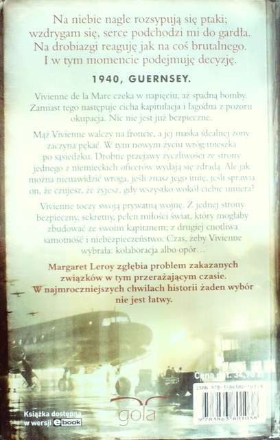 Nie można pani Leroy odmówić lekkiego pióra , pomysłu na opowieść o miłości i codzienności w czasach wojny ,którą będzie się czytało dobrze . Jednak zabrakło w tym wszystkim realizmu . (...) Niby była wojna ,niby wyspa była pod okupacją , a tak naprawdę w życiu mieszkańców wiele się nie zmieniło . Przez większość czasu nie wyczuwało się napięcia jakie panowało między ludźmi mieszkającymi na wyspie a najeźdźcami . Wyjątkowo delikatny obraz wojny. Jak juz był potencjał w danym wątku ,to nie zostawał on wykorzystany do końca . Ledwo niebezpieczeństwo kładło się cieniem na bohaterach , za chwile już nie było po nim śladu .