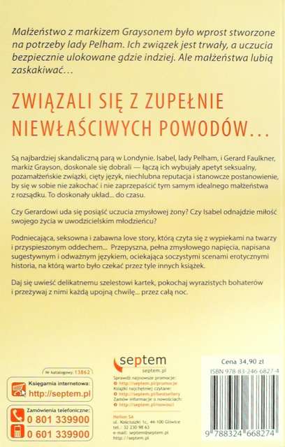 „Mąż, którego nie znałam” jest to pozycja, która łączy ze sobą romans historyczny wraz z literaturą erotyczną. Powieść opowiada nam losy dwojga małżonków, którzy pobrali się z wyjątkowo nietypowych powodów. Zawarli umowę, że małżeństwem będą na papierze jednak wieczory będą spędzać w ramionach kochanków. (...) Jednak cóż się dziwić takiej parze… Nasz tytułowy mąż Gerard to postać pełna namiętności, zmysłowa, inteligentna i pełna niesamowitej seksowności, a sama jego żona niczym nie odstaje od męża. Jedyne czy różni się ta zaskakująca para to wiek. Niestety pewnego dnia, pochłonięty w swej rozpaczy Gerard znika… aż na cztery lata! Więc wyobraźcie sobie zdumienie lady Grayson, kiedy wraca do domu, i to całkowicie odmieniony. Młodzieniec, którym był, zniknął bezpowrotnie. Niestety dla lady Grayson nie tylko charakter i wygląd męża się zmieniły… Książka opisuje nam niesamowitą przemianę zachodzącą w człowieku, ale również wielką siłę miłości. Historia sama w sobie jest bardzo zaskakująca i przesycona namiętnością. Niektórzy mówią, że wydaje się nierealna, jednakże moim zdaniem możemy powiedzieć „nigdy nie mów nigdy” w stosunku do tej historii. Przepełniona jest gorącymi scenami oraz zabawnymi dialogami. Autorka przenosi nas w świat w którym seks poza małżeński nie jest czym bardzo zaskakującym, a skandale i plotki są na porządku dziennym.
