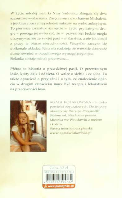 Płótno / Agata Kołakowska. - Warszawa : Prószyński Media Sp. z o.o., 2013. - 398, [1] s. ; 20 cm.