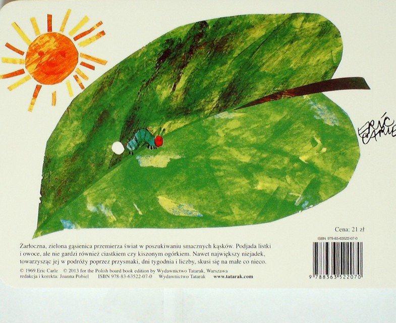 Bardzo głodna gąsienica / Eric Carle. - Warszawa : Wydawnictwo Tatarak, 2013. - [22] s. : il.kolor. ; 13x18 cm.