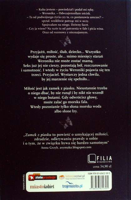 Choć "Zamek z piasku" to literatura kobieca, to nie jest ona ani typowa, ani też płytka. Mówi o rzeczach ważnych, o których wiemy, ale czasem zdajemy sobie z nich sprawę za późno. Autorka podkreśla jak ważna w związku jest rozmowa, wspólne zrozumienie i wsparcie, którego w tej historii zabrakło. (...) Tak, jak mówią słowa piosenki, która powstała specjalnie dla tej książki: "Czasem rozmowa z innym, przy winie w środku nocy może zawrócić w głowie i może zauroczyć. I ten kogo kochasz, kim innym staje się. Czasem problemy wciąż narastają i ginie nić porozumienia".