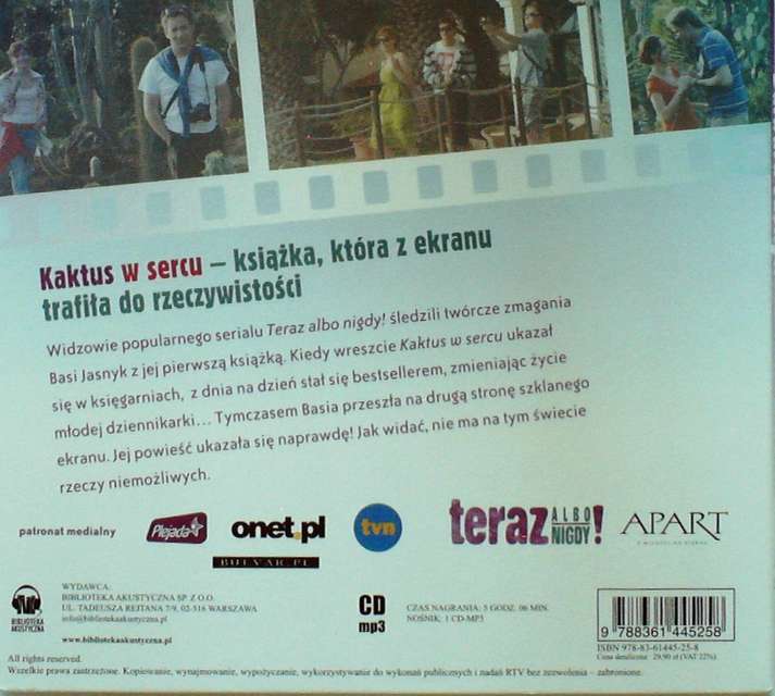 Kaktus w sercu /Barbara Jasnyk ; lektor Anna Komorowska. - Warszawa : Wydawnictwo W.A.B. : Biblioteka Akustyczna, 2009. - 1 płyta CD (5 godz. 6 min.) : digital stereo ; 12 cm ; Format MP 3.