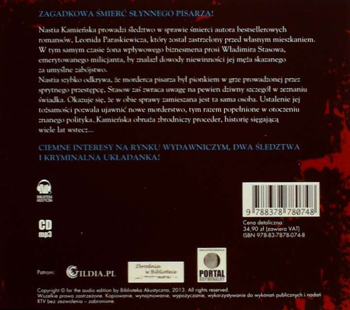 Nagranie na podstawie edycji książkowej, Wyd.1, Grupa Wydawnicza Foksal. Cykl o major Nasti Kamieńskiej. Seria Sensacji i Kryminału