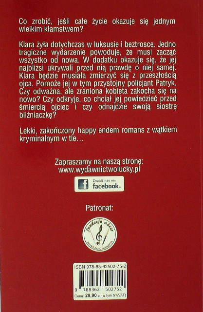 Klara żyła w luksusie i beztrosce. Rodzice, szczególnie ojciec, kochali ją i rozpieszczali. Nawet jako mężatka nie musiała pracować i niczym się przejmować. Koniec tej sielanki przyszedł wraz z wypadkiem samochodowym, w którym zginęli jej rodzice. Klarze załamał się świat. (...) Okazało się, że mąż ją zdradza, a firma ojca, którą miała przejąć, tonie w długach. Kobieta zmuszona była sprzedać dom rodzinny, podjąć pracę i rozwieść się z mężem. Na dodatek odkryła, że ktoś czyha na jej życie. Klara nie może czuć się bezpiecznie. Kobieta podejrzewa, że jej rodzice coś ukrywali i dlatego mogli zostać zamordowani...