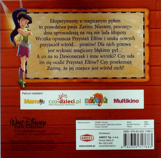 Dzwoneczek i tajemnica Piratów / tekst polski Agnieszka Zwolińska-Składanowska. - Łódź : AMEET Sp. z o.o., 2014. - 1 płyta CD : digital stereo ; 12 cm ; Format MP 3 + książka 32 s. : il. kolor.
