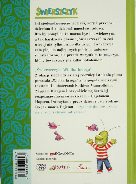Świerszczyk Wielka księga. - Warszawa : Wydawnictwo Egmont Polska Sp. z o.o., 2015. - 225 s. : il.kolor. ; 24 cm.