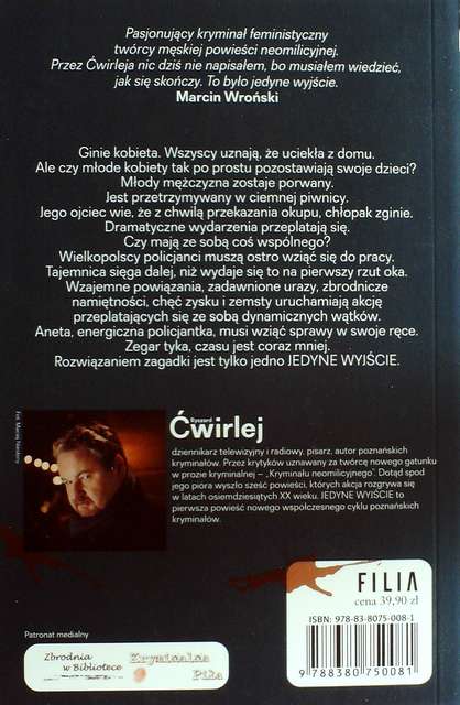 Jedyne wyjście / Ryszard Ćwirlej. - Poznań : Wydawnictwo Filia, 2015. - 462 s. ; 21 cm.
