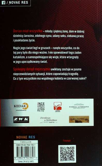 Za przekazanie egzemplarza recenzenckiego (przedpremierowego) dziękuję wydawnictwu: opis pochodzi z okładki książki Tytuł: "Czerwień obłędu" Autor: Dawid Waszak Wydawnictwo: Novae Res Okładka: Magdalena Zawadzka Zdjęcie na okładce: Lithiumphoto | Dreamstime.com Wydanie: I Data wydania: 3 września 2015 ISBN: 978-83-7942-785-7