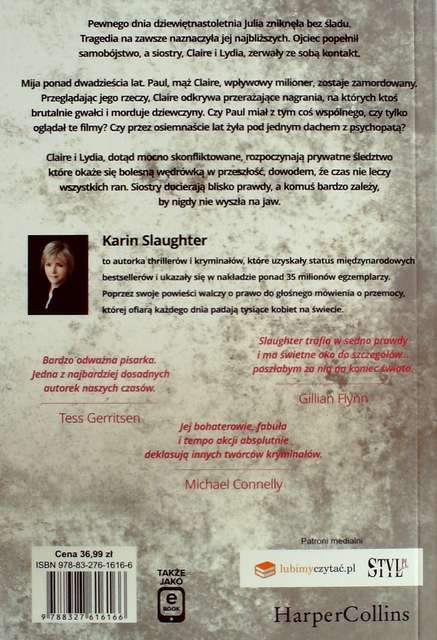 Bardzo dobry i przerażający jednocześnie thriller. Świetnie zbudowane napięcie, pełna zawiłości i niedomówień fabuła, wyraziści bohaterowie i...przerażające zbrodnie, o których nie chcemy nawet myśleć.... kilkakrotnie serce mi przyspieszyło i włos na głowie się zjeżył ....