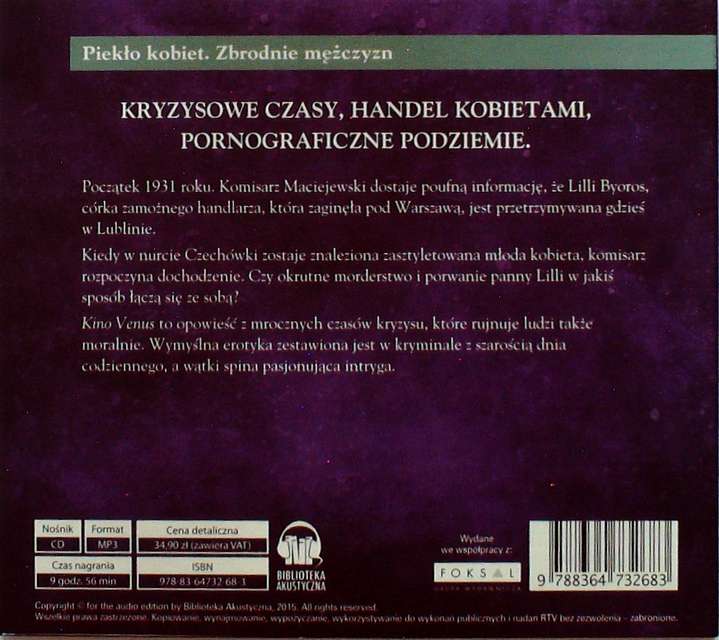 Kino Venus / Marcin Wroński ; lektor Tomasz Sobczak. - Warszawa : Grupa Wydawnicza Foksal Sp. z o.o., 2015. - 1 płyta CD 9 godz. 56 min.) : digital stereo ; 12 cm ; Format MP3.