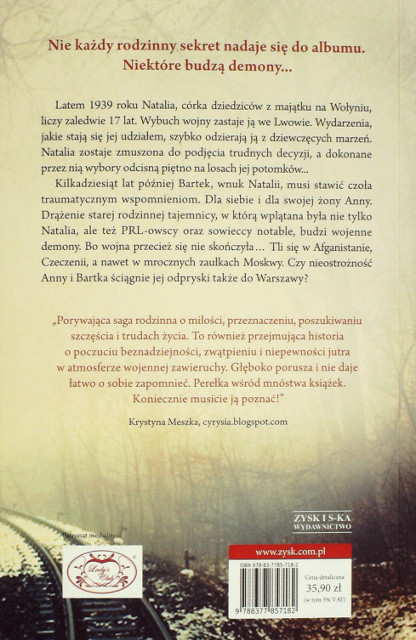 Piękna, ciekawa, prawdziwa historia Polski i Polaków. Krzywdy ludzkie na tle dziejów naszego kraju, jej ran, cierpienia i zwycięstwa. Pięknie wykreowani bohaterowie, z którymi można się utożsamiać i przeżywać ich walkę naprawdę.