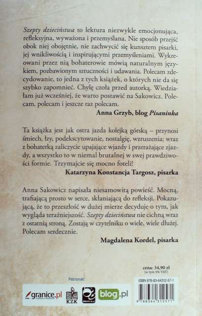 Szepty dzieciństwa / Anna Sakowicz. - Katowice : Wydawnictwo Szara Godzina s.c., 2015. - 301, [1] s. ; 21 cm.