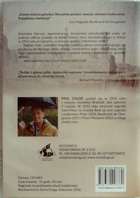 Skoro są zawarte w jednej książce autorstwa Paula Colize, to nie zdradzając fabuły podpowiem, że tak zapewne musi być. Oba sensacyjne wątki są równie wciągające i ciągnące ku finałowi czytelniczą ciekawość. (...) Jednak ich bohaterowie nie wydają się być postaciami z którymi chciałby się utożsamiać. Potrafimy jakoś tam zrozumieć motywy ich działań i postępowań, ale z drugiej strony jest coś odpychającego w ich osobowościach. Aż chciałoby się zakrzyknąć za kobietami, będącymi postaciami drugoplanowymi: ,,panowie - stop - opamiętajcie swoją zaciekłość".