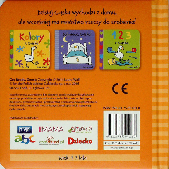 Wstawaj Gąsko / Laura Wall. - Łódź : Galaktyka, 2016. - [16] s. : il. kolor. ; 17x17 cm.