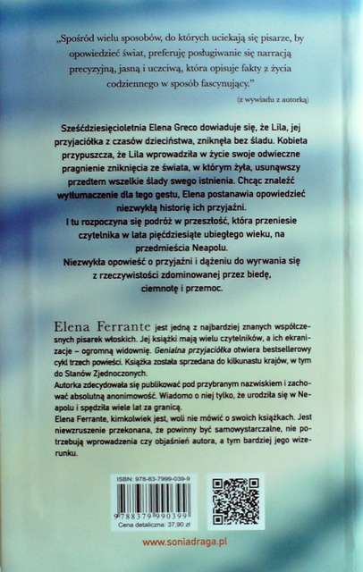 "Genialna przyjaciólka" stanowi Cz.1 Cyklu. Cz.2 "Historia nowego nazwiska", Cz.3 "Historia ucieczki", Cz.4 "Historia zaginionej dziewczynki".