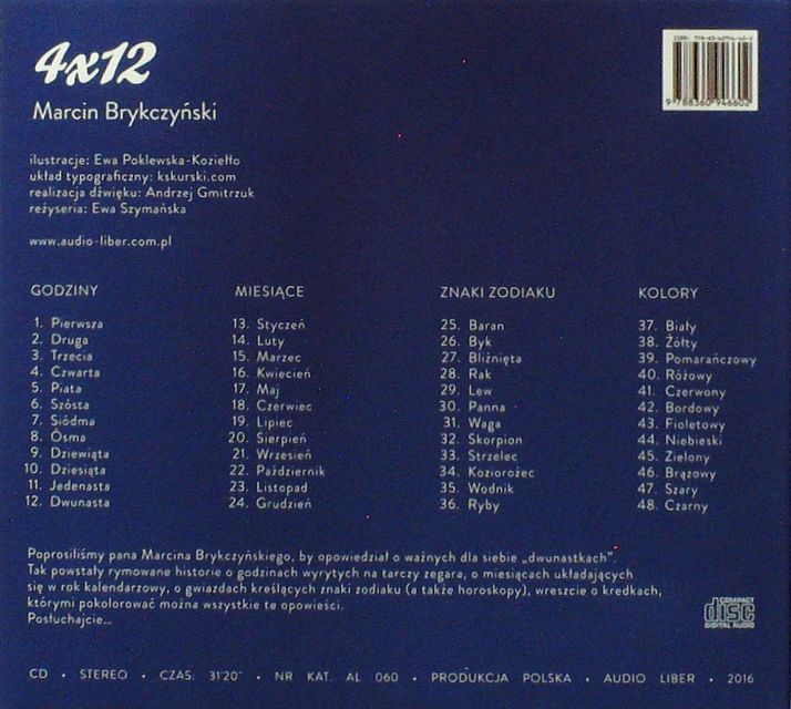 4x12 / Marcin Brykczyński ; lektor Marcin Brykczyński. - [Warszawa] : Audio Liber, 2016. - 1 płyta CD (31 min. 20 sek.) : digital stereo ; 12 cm ; Format MP3.