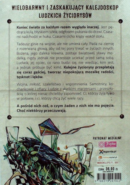 (...)Na pierwszy rzut oka zdają się nie pasować, ale potem spostrzec można coraz więcej połączeń pomiędzy nimi. Skoro więc książka ciekawi, język jest cudowny i całość dobrze się czyta, skąd moje "ale"? Cóż. Być może wzięło się ono stąd, że pomimo niewielkich rozmiarów baaardzo długo czytałam tę książkę. Nie dlatego, że była zła, ale że czytałam ją tylko i wyłącznie w komunikacji miejskiej, a i w trakcie lektury na jakiś tydzień porzuciłam ją na rzecz innej. A biorąc pod uwagę detale łączę poszczególne historie i bohaterów, ja szybko przestałam "ogarniać" kto jest kim i jakie ma połączenia z resztą postaci. Kiedy dziś doczytywałam ostatnie 50-60 stron ciągle przyłapywałam się na myśli "to on już się pojawiał? ale gdzie? to była jego matka, czy kochanka, a może sąsiadka?". To mi trochę odebrało przyjemność z czytania, ale zdaję sobie sprawę z tego, że pewnie gdybym połknęła ją na raz jednego wieczoru pewnie bardziej przypadłaby mi do gustu, bo łatwiej odnalazłabym się pośród powiązań pomiędzy bohaterami. Nie do końca usatysfakcjonowało mnie też zakończenie. To w "Dygocie" było moim zdaniem lepsze, stanowiło swoiste uzupełnienie oraz domknięcie do tego, co działo się na początku. Tutaj było trochę zbyt hm. Użyję słów "metafizyczne" oraz "melancholijne", ale nie jestem do końca przekonana, czy one aby na pewno dobrze oddają to, co uważam. Wiem, masło maślane. Powiedzmy po prostu, że mi się nie podobało, o! Podsumowując. Polecam fanom Małeckiego. Jeżeli jednak nie czytaliście jeszcze nic tego autora, to absolutnie zachęcam do tego, by zacząć od fenomenalnego "Dygotu"!