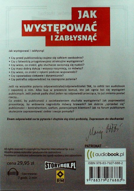 Jak występować i zabłysnąć / Maciej Orłoś ; lektor Maciej Orłoś. - Piaseczno : Heraclon International - Storybox.pl, 2016. - 1 płyta CD (7 godz. 2 min.) : digital stereo ; 12 cm ; Format MP3.