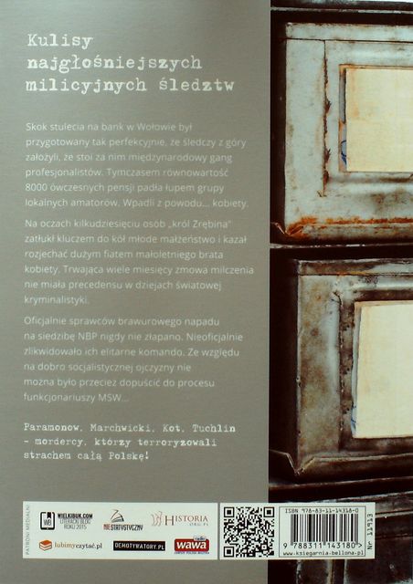 W tej książce dwóch autorów, Kazimierz Kunicki oraz Tomasz Ławecki, przybliżają nam historie największych zbrodni z okresu PRL-u. Poczynając od zapomnianego już trochę dziś Paramanowa, przez zwyrodnialca, który jeszcze dziś w moim rodzimym Krakowie budzi przerażenie, Kota po początki pruszkowskiej mafii. Prawdziwa plejada groźnych przestępców, którzy terroryzowali mieszkańców swoich miast i wiosek lub - jak w przypadku napadu stulecia na bank w Wołowie, wcale tacy groźni nie byli, choć takimi właśnie się wydawali.