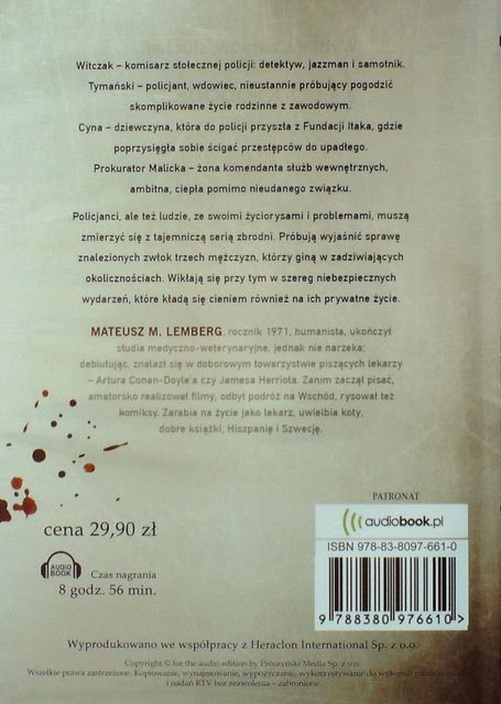 Zasługa nocy / Mateusz M. Lemberg ; lektor Katarzyna Bagniewska. - Warszawa : Prószyński Media Sp. z o.o., 2014. - 1 płyta CD (8 godz. 56 min.) : digital stereo ; 12 cm ; Format MP 3.