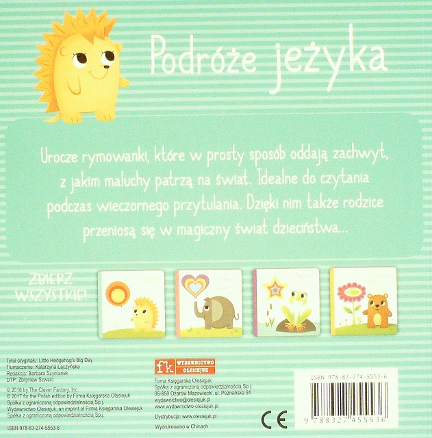 Podróże jeżyka / tł. Katarzyna Łączyńska. - Ożarów Mazowiecki : Wydawnictwo Olesiejuk, 2017. - [8] s. : il. kolor. ; 18x18 cm.