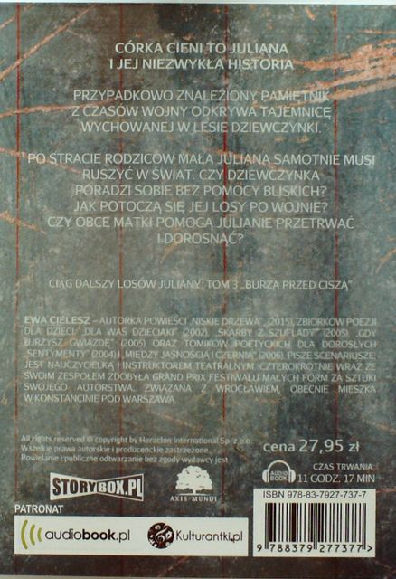 Córka Cieni. T.2, Obce Matki / Ewa Cielesz ; lektor Joanna Gajór. - Piaseczno : Heraclon International - Storybox.pl, [2017]. - 1 płyta CD (11 godz. 17 min.) : digital stereo ; Format MP3 ; 12 cm.