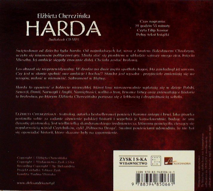 Nie trzeba być fanem powieści historycznej, by zachwycić się "Hardą" Elżbiety Cherezińskiej. Ta powieść czaruje i porywa od pierwszej do ostatniej strony. Bitwy, wojny, zdrady, sojusze, nieustanna walka o tron i władzę to historia średniowiecza, którą czyta się z wypiekami na twarzy. Co ważne napisana jest tak przekonująco, że nie sposób odgadnąć gdzie kończy się historia, a zaczyna fikcja literacka.