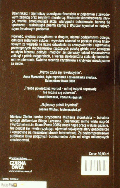Wyrok / Mariusz Zielke. - Warszawa : Wydawnictwo Czarna Owca, 2012. - 527 s. ; 21 cm.