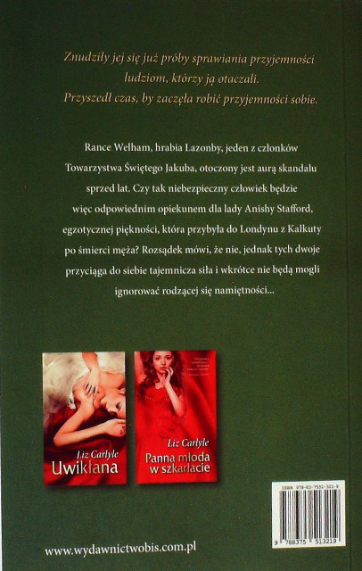 (stanowi Cz.3 cyklu "Towarzystwo Świętego Jakuba"'Cz.1"Uwikłana"'Cz.2."Panna młoda w szkarłacie"'Cz.4"Panna młoda w blasku księżyca")