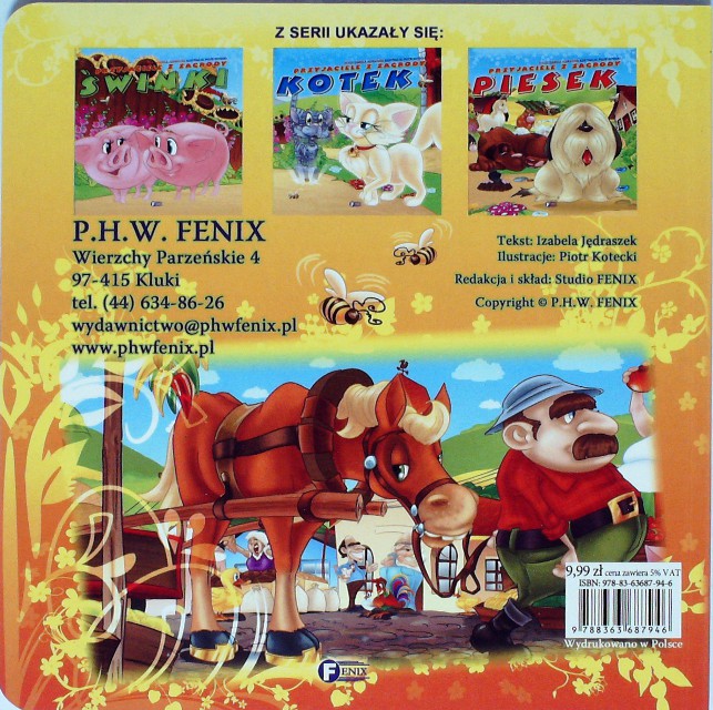 Konik / tekst Izabela Jędraszek ; il. Piotr Kotecki. - Wierzchy Parzeńskie : P.H.W. FENIX, [2013]. - [10] s. : il. kolor. ; 19 x 19 cm.
