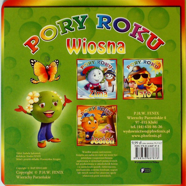 Wiosna / tekst Izabela Jędraszek. - Wierzchy Parzeńskie : P.H.W. FENIX, [2013]. - [10] s. : il. kolor. ; 19 x 19 cm.