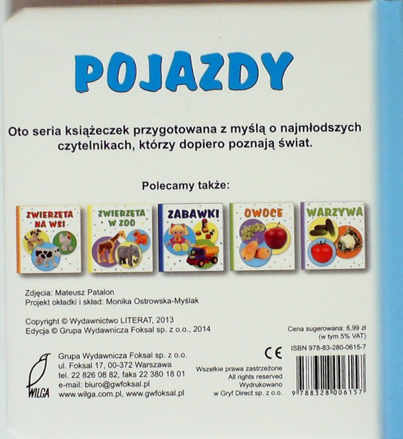 Pojazdy / zdjęcia Mateusz Patalon. - Warszawa : Grupa Wydawnicza Foksal, 2014. - [10] s. : il.kolor. ; 14x13 cm.