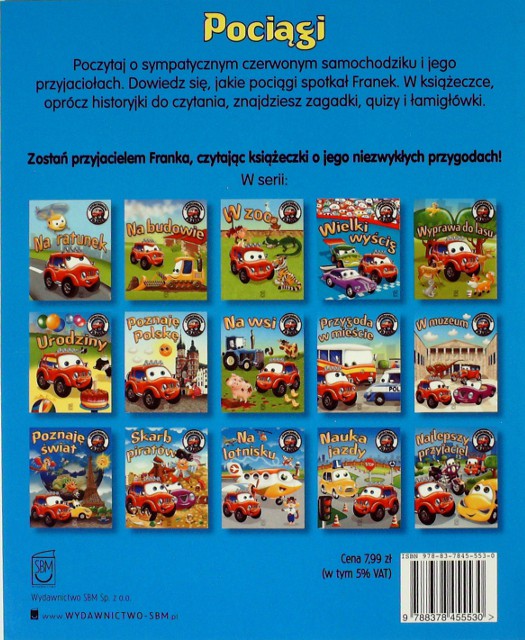 Pociągi / Elżbieta Wójcik ; il. Wojciech Górski. - Warszawa : Wydawnictwo SBM, 2014. - [32] s. : il. kolor. ; 23 x 19 cm.