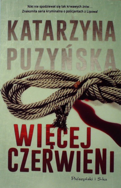 (...)a każda z nich jest na swój sposób unikalna. Widać tutaj, jak świetnym psychologiem jest autorka, wnika w ludzką duszę, penetrując jej zakamarki i wyciągnąć najbardziej skrywane sekrety i cechy na światło dzienne, a tych w powieści nie brakuje. Poznajemy trochę więcej szczegółów z życia komisarz Kopp, która w powieści zamieniła czarną skórę na sukienkę i baletki, a jej serce zaczyna bić trochę szybciej do Podgórskiego. Misternie utkana przez autorkę intryga wciąga, Puzyńska wodzi czytelnika za nos, nie pozwalając zbyt szybko znaleźć odpowiedzi na pytanie "kto". Tym razem dość szybko udało się odpowiedzieć na pytanie kto mordował. Nie zepsuło mi to jednak przyjemności z lektury, bo oczywiście natychmiast pojawiło się pytanie dlaczego, które nie pozwoliło mi odłożyć książki na bok. Jedyna rzecz, która chyba jest znakiem rozpoznawczym autorki (nie wiem jak to wygląda w kolejnych tomach cyklu) to podawanie pełnych imion i nazwisk bohaterów wraz z pełnioną funkcją. Z jednej strony dobrze, bo postacie dzięki temu zapadają w pamięć, ale co za dużo to niezdrowo. Podsumowując "Więcej czerwieni" to bardzo dobrze napisany kryminał. Dynamiczny, pełen zwrotów akcji, gęstej atmosfery, zapewniający czytelnikowi moc wrażeń. Lipowo wciąga, a ja już odmierzam czas, kiedy znów odwiedzę tę malowniczą miejscowość.