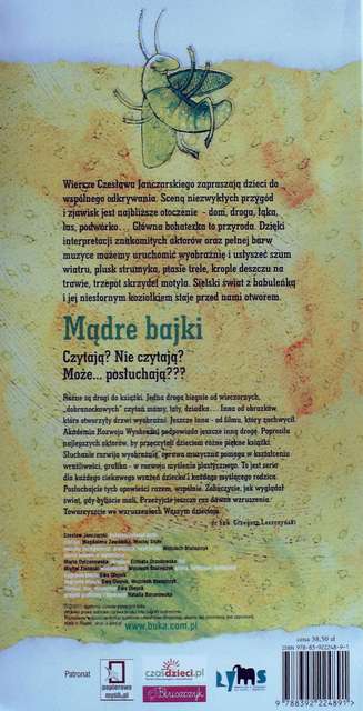 Świerszczykowe nutki / Czesław Janczarski ; lektor Magdalena Zawadzka, Maciej Stuhr. - [Warszawa] : Akademia Rozwoju Wyobraźni Buka, 2011. - 1 płyta CD (50 min. 55 sek.) : digital stereo ; 12 cm ; Format MP3 + wycinanki.