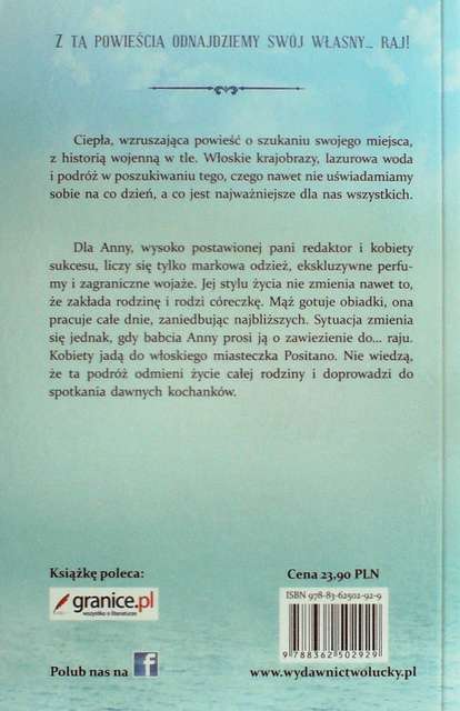 Może dlatego, gdy babcia Anny prosi ją o zawiezienie do raju, włoskiego miasteczka Positano, ta zgadza się bez wachania. Nie wie, że ta podróż zmieni jej życie na zawsze.