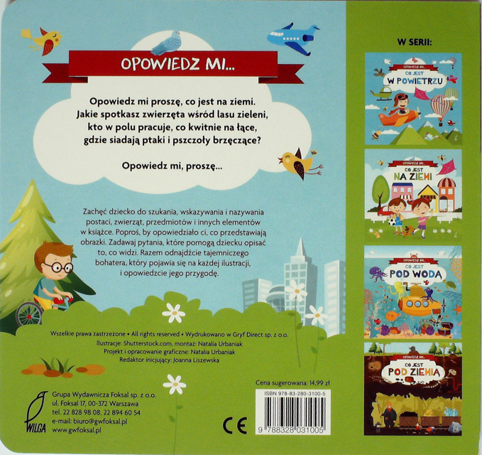 Co jest na ziemi / il. Natalia Urbaniak. - Warszawa : Grupa Wydawnicza Foksal Sp. z o.o., [2016]. - [12] s. : il. kolor. ; 19x20 cm.