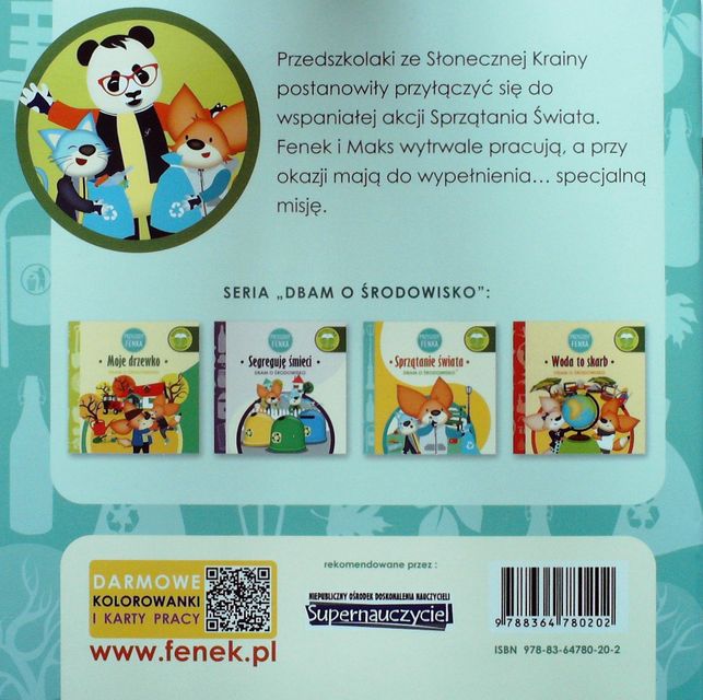 Sprzątanie świata / tekst Magdalena Gruca ; il. Ewa Zontek. - Bielsko-Biała : Wydawnictwo Edukacyjne Sobik, 2016. - [20] s. : il. kolor. ; 22 x22 cm.