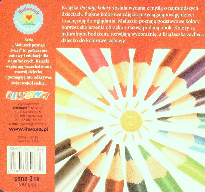 Poznaję kolory. - Warszawa : Wydawnictwo Liwona, 2016. - [9] s. : il. kolor. ; 14x15 cm.