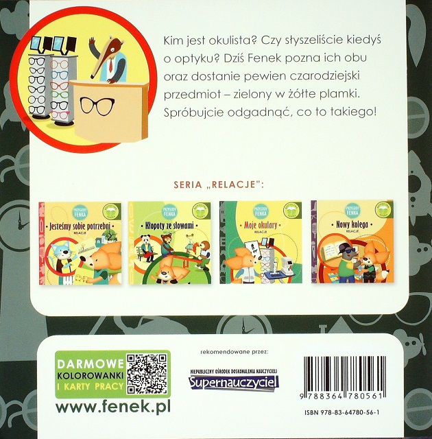 Moje okulary / Magdalena Gruca ; il. Ewa Zontek. - Bielsko-Biała : Wydawnictwo Edukacyjne Sobik, 2017. - [20] s. : il. kolor. ; 22x22 cm.